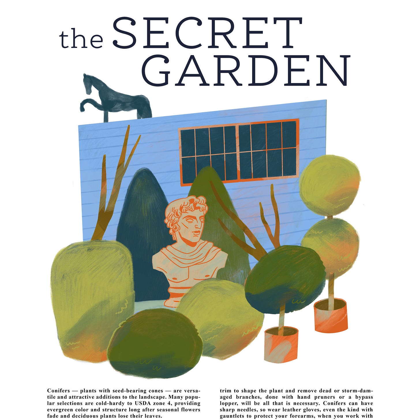 I have goals and dreams for next year and I’ve written them down. Generally, I would like to experience satisfaction. Below are some digital experiments where I’ve allowed myself to dream up some spot illustrations for an imaginary gardening magazine.