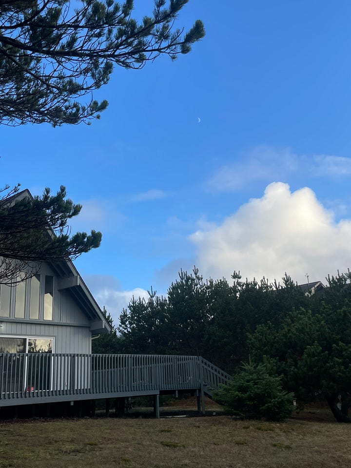 For the holidays I decided to stay with my friends who have a house on the Washington coast. I had some pretty restorative nature walks during my stay – after a cyclone storm rolled through. Winds were so strong they made the house shake and birds fly backwards. We lost power for six hours one night and entertained ourselves with a puzzle and boardgames by the light of headlamps. Someone lit a fire in the fireplace and cooked crab cakes on a skillet.